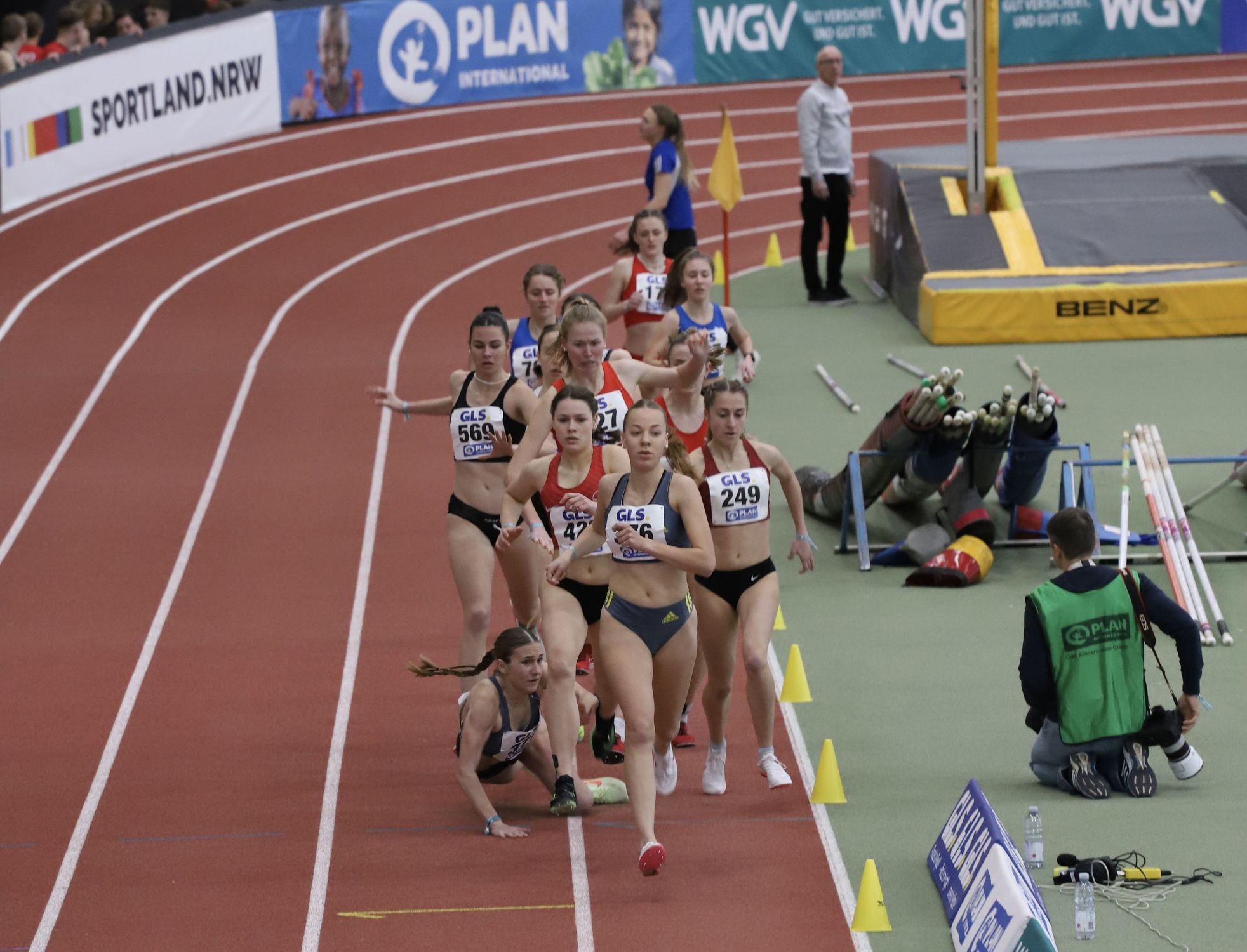 Knapp dahinter belegte Niclas Jan Kaluza (Eintracht Hildesheim) in persönlicher Bestzeit von 48,63 Sekunden Rang fünf. Über die 800m-Distanz der weiblichen Jugend U20 kamen Malena Schomaker (LG Papenburg/Asendorf) und Lotta Lange (Emder Laufgemeinschaft) in 2:16,43 Minuten und 2:16,86 Minuten als fünfte und sechste ins Ziel. Auf der Mittelstrecke der Männer konnte Niedersachsen ebenfalls keine Medaille feiern. Der Medaillenkandidat über die 1500m Tim Kalies (Braunschweiger Laufclub) stürzte drei Runden vor Schluss und kam als zehnter ins Ziel. Gleiches Szenario ereilte Lera Miller (VfL Löningen), die in der Qualifikation die schnellste 1500m-Zeit der Mädchen erlief, sie wurde in 4:40,99 Minuten Siebte. Dennoch ging Gold nach Niedersachsen, so machte sich schlussendlich Vereinskollegin Carolin Hinrichs in 4:34,40 Minuten die Goldmedaille klar. Überraschend zu Bronze lief auf der 3000m-Strecke der männlichen Jugend Jonas Kulgemeyer (OTB Osnabrück). Er erzielte zudem eine neue Bestzeit von 8:31,31 Minuten. Über die 3000m der WJU20 vertrat Sophie Hinrichs, den traditionellen Läuferverein VfL Löningen, sie wurde in einer Zeit von 10:27,90 Minuten Zehnte.