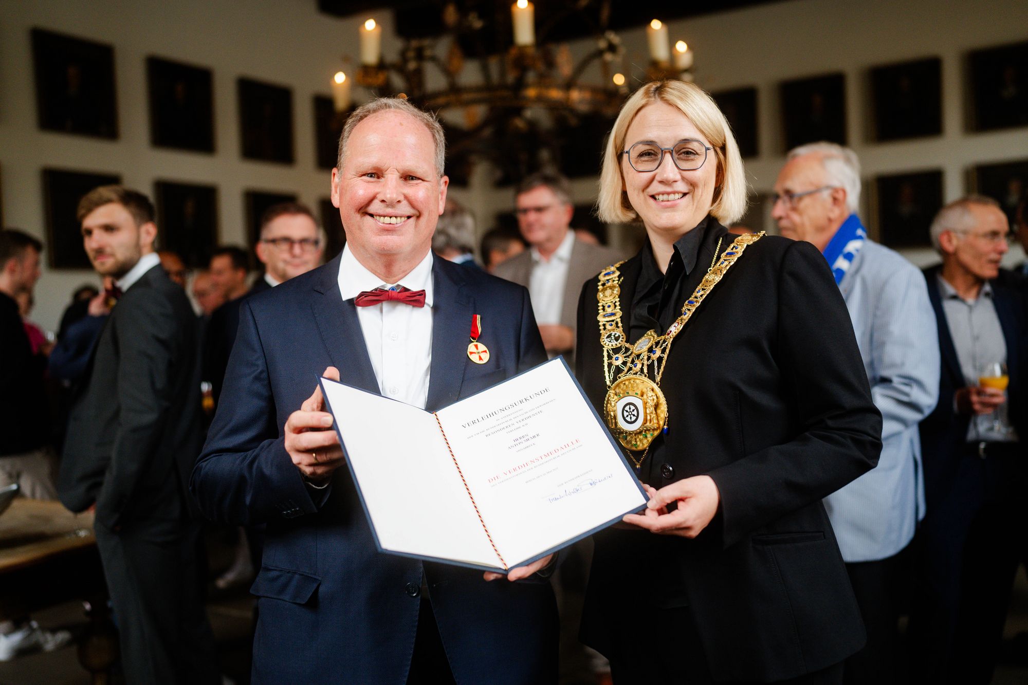 „Der Sport ist ein herausragendes Bindeglied zwischen Generationen, Kulturkreisen und gesellschaftlichen Schichten, er kann aus vermeintlichen Verlieren selbstbewusste Gewinner machen. Ihren unermüdlichen Einsatz dafür seit fast 50 Jahren - im Spitzensport, vor allem an der Basis - würdigen wir“, sagte Katharina Pötter. Im Namen von Bundespräsident Frank-Walter Steinmeier überreichte die Osnabrücker Oberbürgermeisterin dem 65-Jährigen die Auszeichnung bei einer Feierstunde im Friedenssaal des Osnabrücker Rathauses.