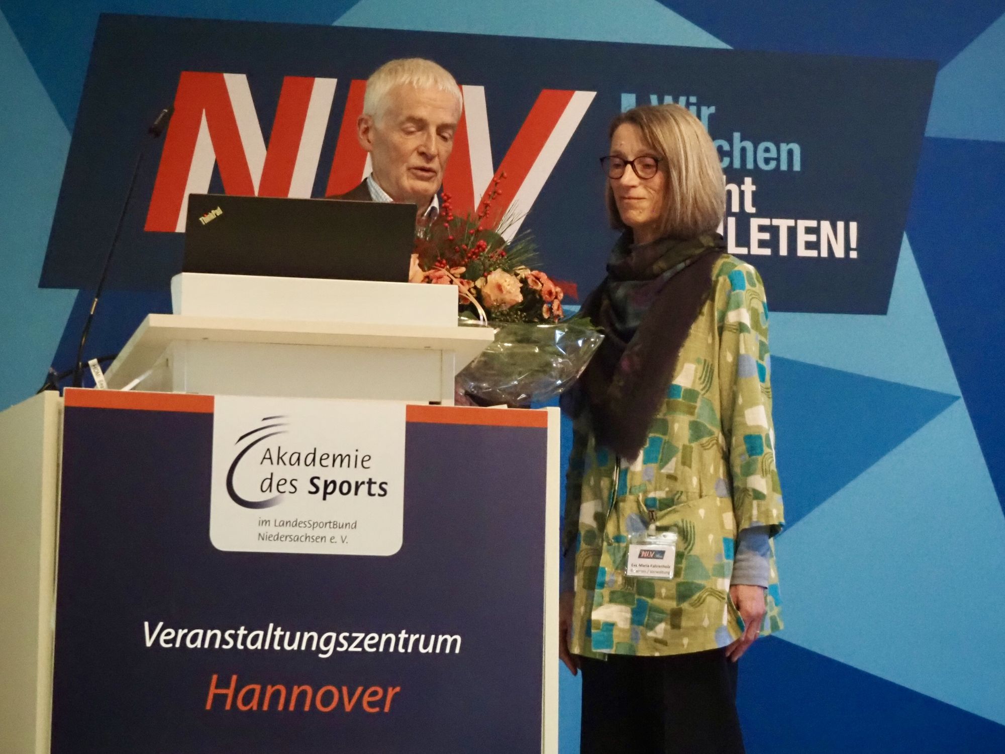 Neben den Berichten aus den unterschiedlichen Bereichen stellten sich auch die neuen NLV-Mitarbeiter*Innen den Delegierten vor: Sandra Wallenhorst (neue Landestrainerin Lauf Nachwuchs), Jan de Vries (Dualer Student), Martha Fahrenkrug, Jaqueliné Gippner, Hanna Kubelke und Klara Dyszack (alle BFD im Sport) sprachen direkt zu Beginn der Tagung einen Gruß aus und erzählten von ihren neuen Tätigkeiten. Zudem wurde die langjährige NLV-Mitarbeiterin Eva-Maria Fahrenholz gebührend verabschiedet, die in der Geschäftsstelle die Funktion der Finanzbuchhaltung inne hatte.