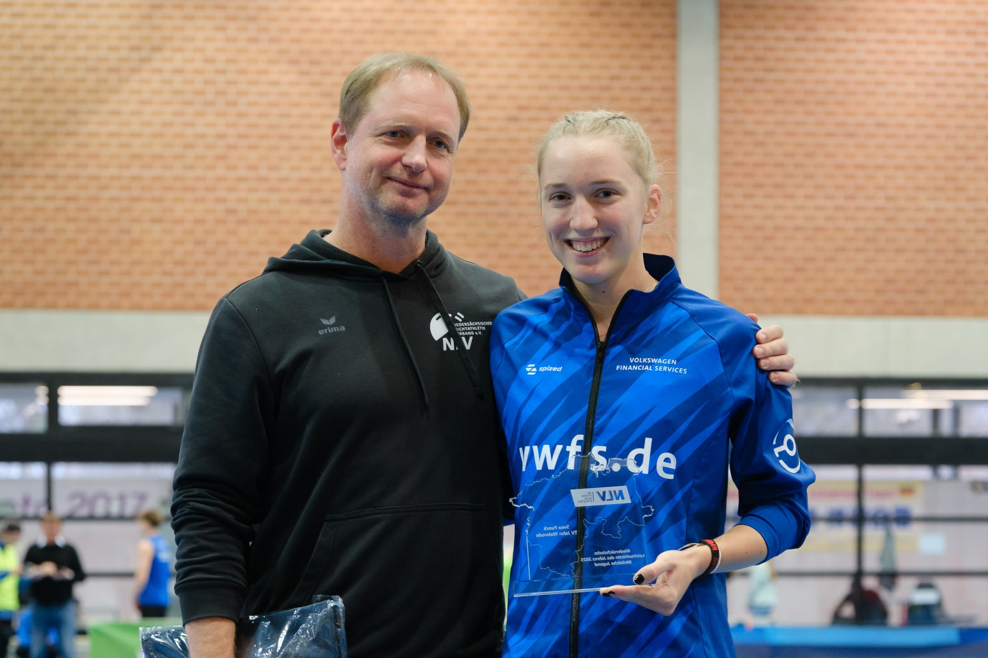 Luna Fischer, die im vergangenen Jahr die Glückwünsche zur „Nachwuchssportlerin des Jahres“ entgegennehmen durfte, wird damit von Svea Funck auf Platz zwei verwiesen. Die Langsprinterin vom VfL Eintracht Hannover begeisterte im Sommer 2025 mit dem Gewinn der Staffel-Silbermedaille bei den U20-Europameisterschaften in Tampere. Im Einzelrennen über die 400m gelang der mehrfachen Deutschen Meisterin dort außerdem ein zwölfter Platz. Rang drei in der Gesamtabrechnung geht an Antonia Bronnert. Die Dreispringerin vom VfL Löningen feierte nach einer langen Verletzungsphase ein erfolgreiches Comeback in das Wettkampfgeschehen: Sie wurde in Bochum-Wattenscheid Deutsche U20-Meisterin und begeisterte in Tampere mit einem fünften Platz im Dreisprungfinale. Außerdem auf dem Wahlzettel standen in diesem Jahr Lera Miller (VfL Löningen), Lynn Michelmann (TSV Asendorf), Friederike Heinichen (SVG GW Bad Gandersheim) und Dorothea Gantert (SpVG Laatzen).