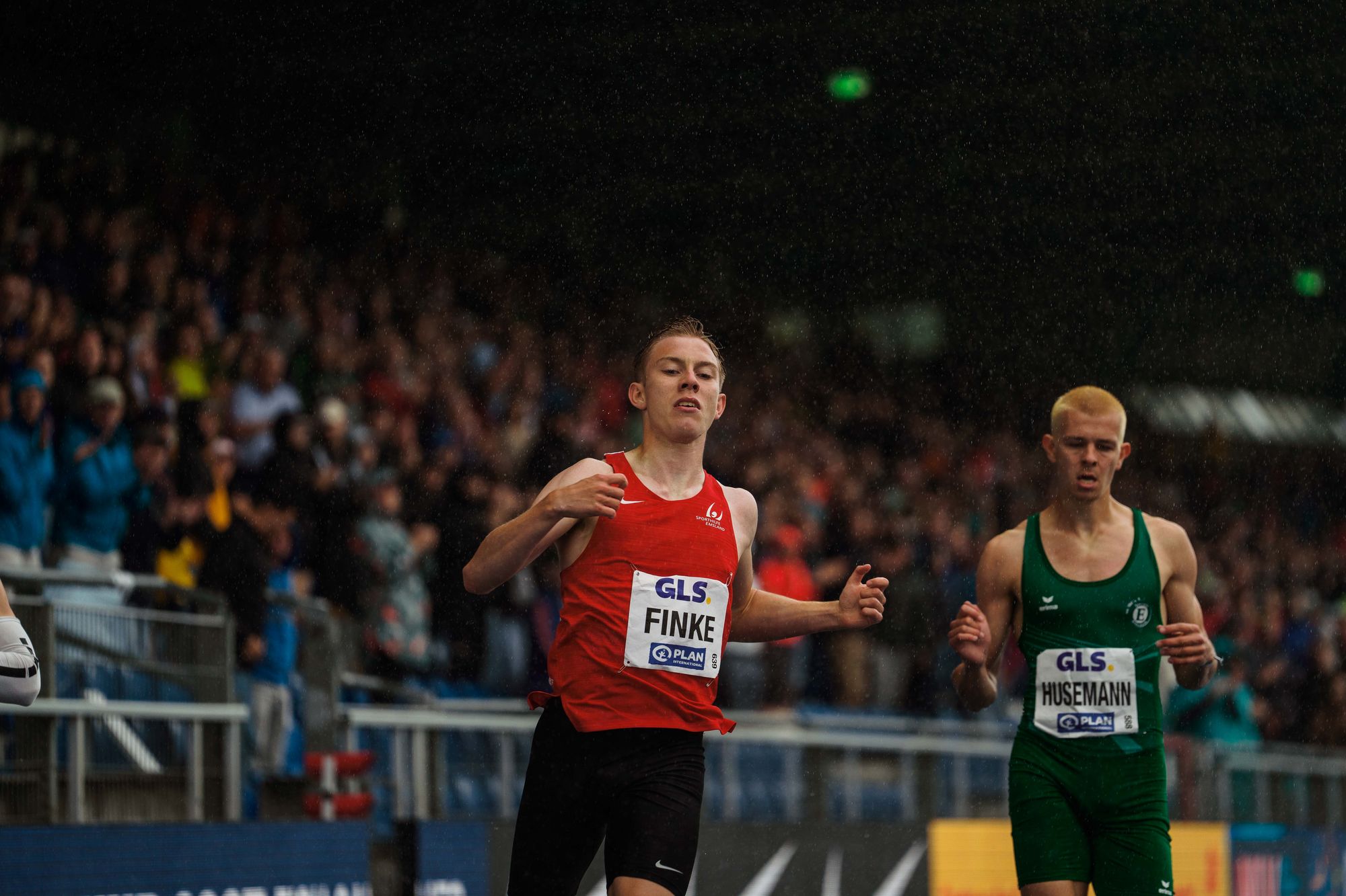 Nachwuchssprinter Thorben Finke ließ sich vom schlechten Wetter überhaupt nicht ablenken. Nachdem die niedersächsischen 200m-Sprinter zuvor bereits die Halbfinals dominiert hatten, versprach die finale Entscheidung spannend zu werden: Das Endergebnis war dann eine riesengroße Überraschung. Bei seiner ersten Aktiven-Meisterschaft stürmte der 19-jährige Finke nach 21,32sek über die Ziellinie – Silber! „Ich weiß gerade gar nicht, was ich sagen soll. Ein Kindheitstraum, der in Erfüllung geht“, erzählte der Athlet vom SV Sigiltra Sögel, nachdem seine Trainingsgruppe aus Hannover ihn als erste Gratulantin empfangen hatte. Platz vier in diesem denkwürdigen Finale ging an Max Husemann von Eintracht Hildesheim. Wenngleich das U20-Talent nach der Finalabsage vom Halbfinalschnellsten Deniz Almas mit Rang drei geliebäugelt hatte, zeigte sich der zweite Newcomer im Bunde überaus zufrieden.