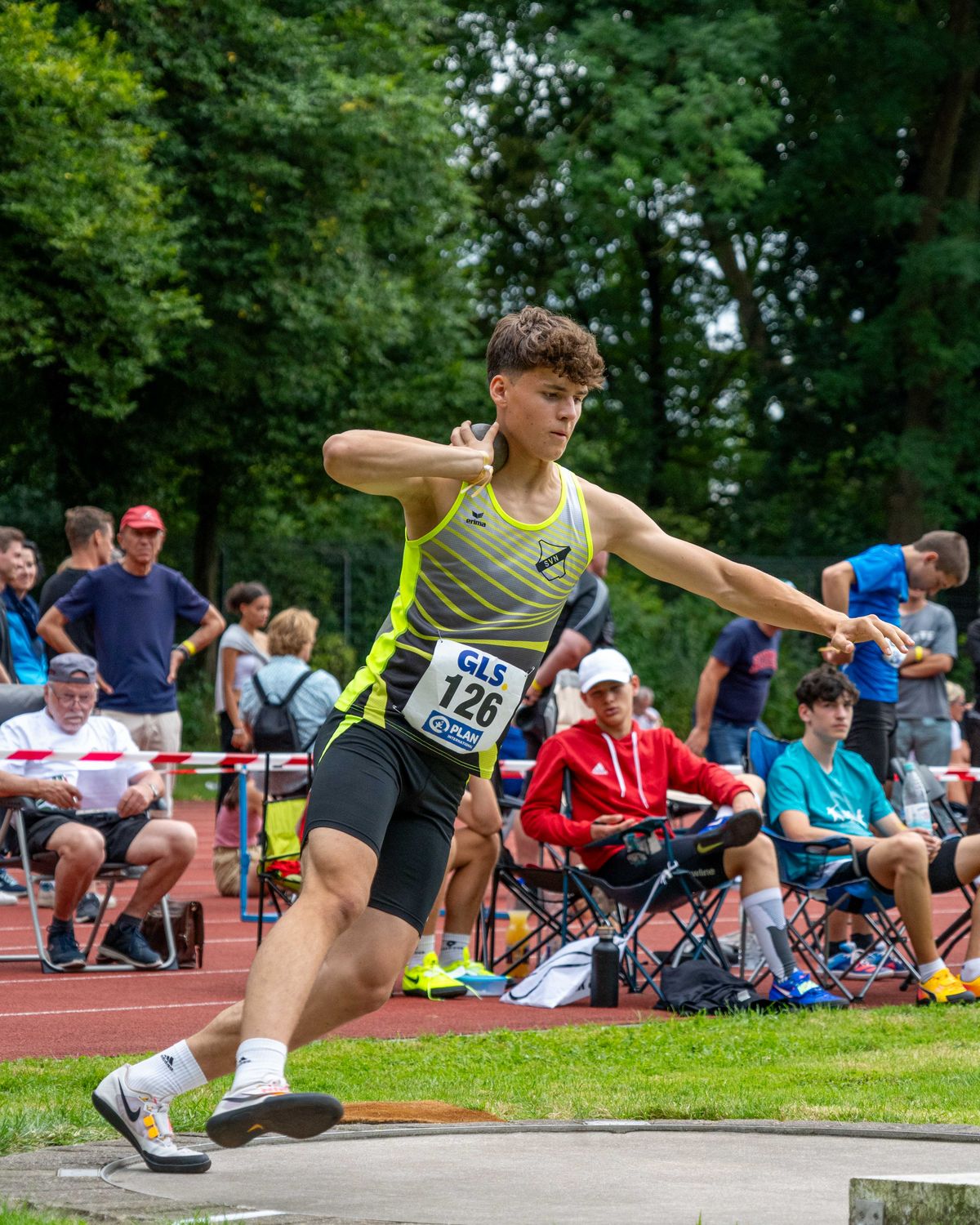 Sie haben heute Abend das Licht im Erika-Fisch-Stadion ausgemacht: Die Neunkämpfer der M15 – 51 Jungs an der Zahl – füllten das Stadion am ersten Tag der Deutschen Meisterschaften mit Leben. Es ist auch die Altersklasse, in der gleich sechs Athleten aus Niedersachsen an den Start gehen. Von ihnen am meisten Punkte eingetütet hat bis dato Weitsprung-Spezialist Mica Schade von der LG Emstal Dörpen. Er liegt mit einer 2.414 Punkten auf einem vielversprechenden achten Rang. Maximilian Weppler (VfL Eintracht Hannover) übernachtet auf Platz 23, sein Vereinskollege Max Lucas auf 26, Henry Ahrenshop (SV Nienhagen) auf Platz 29, Christian Kulp (VfL Eintracht Hannover) auf 41 und der vierte Eintracht-Athlet Jan Linschmann auf der 44.