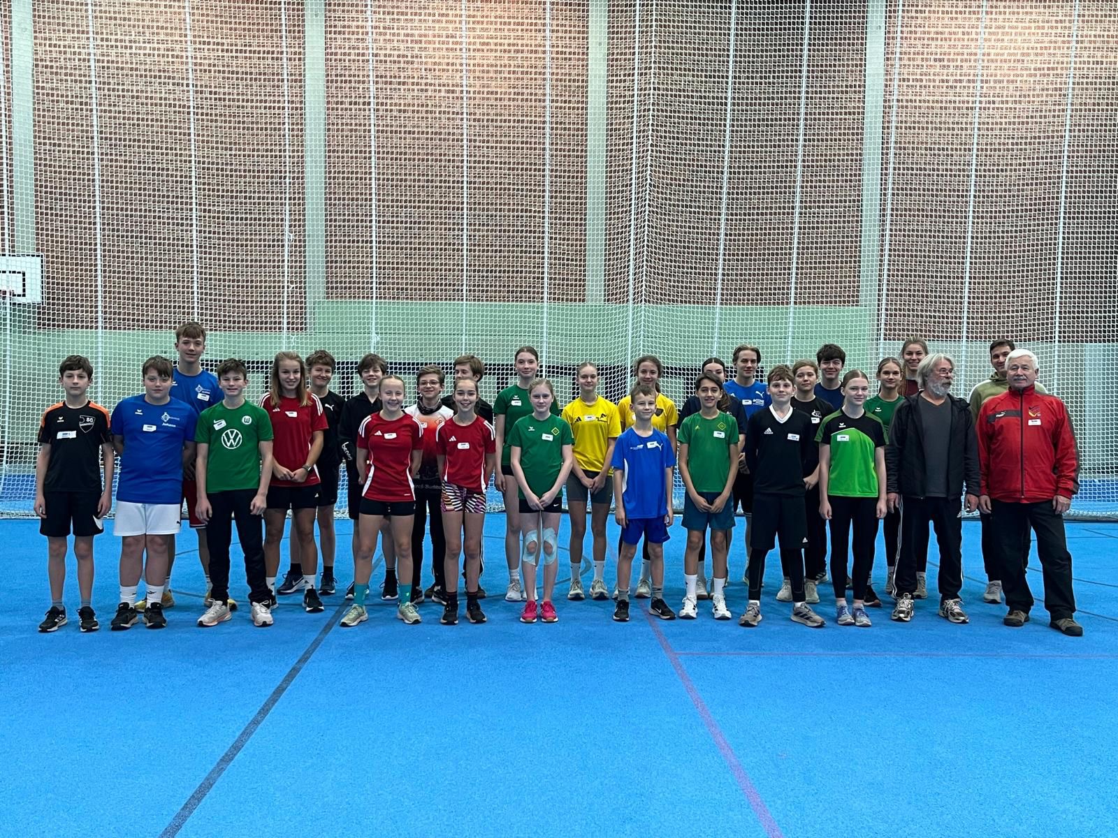 So kamen bei der Neuauflage am 13. Dezember fast 30 junge Sportler*innen der Jahrgänge 2011 bis 2013 im Sportleistungszentrum in Hannover zusammen, um zielgerichtet an die teils sehr komplexen Bewegungsabläufe der verschiedenen Wurf- und Stoßdisziplinen herangeführt zu werden. Mit von der Partie waren dabei auch einige interessierte Heimtrainer*innen, die sich vom Team der NLV-Wurfschule ebenfalls ein paar Tipps und Tricks für das einige Training abschauen konnten. Unterstützt wurde Franz Pfrepper an diesem Tag von Marek Schulz im Speer- sowie Wolfgang Scholz und Top-Talent Lara Hundertmark im Hammerwurf-Training. Am Vor- und Nachmittag lernten die Teilnehmenden – in Gruppen aufgeteilt – die verschiedenen Wurfdisziplinen im Rotationsprinzip kennen. Am Vormittag standen zudem allgemeine Würfe mit dem Medizinball auf dem Programm, bevor die Einheit am Nachmittag mit einem Staffelspiel abgeschlossen wurde.