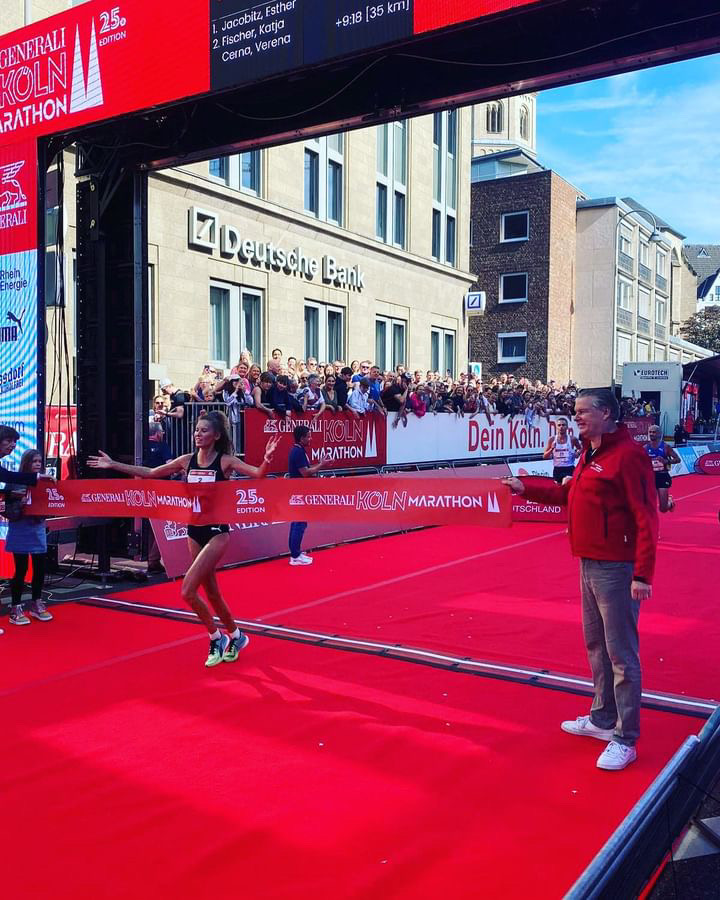 Die Erschöpfung war der Athletin vom TK zu Hannover im Zielbereich dann aber anzusehen: Wie viele andere Teilnehmenden auch hatte sie ab der Hälfte des Rennens vor allem mit den warmen Temperaturen zu kämpfen. Außerdem berichtete sie später von Bauchschmerzen, die sie in der zweiten Hälfte am Trinken und Essen gehindert hätten. Die 26-Jährige gab sich aber nicht geschlagen: „Ich habe lange in Köln gelebt und heute alle fünf Minuten meinen Namen gehört. Der tolle Support hat mich ins Ziel getragen.“