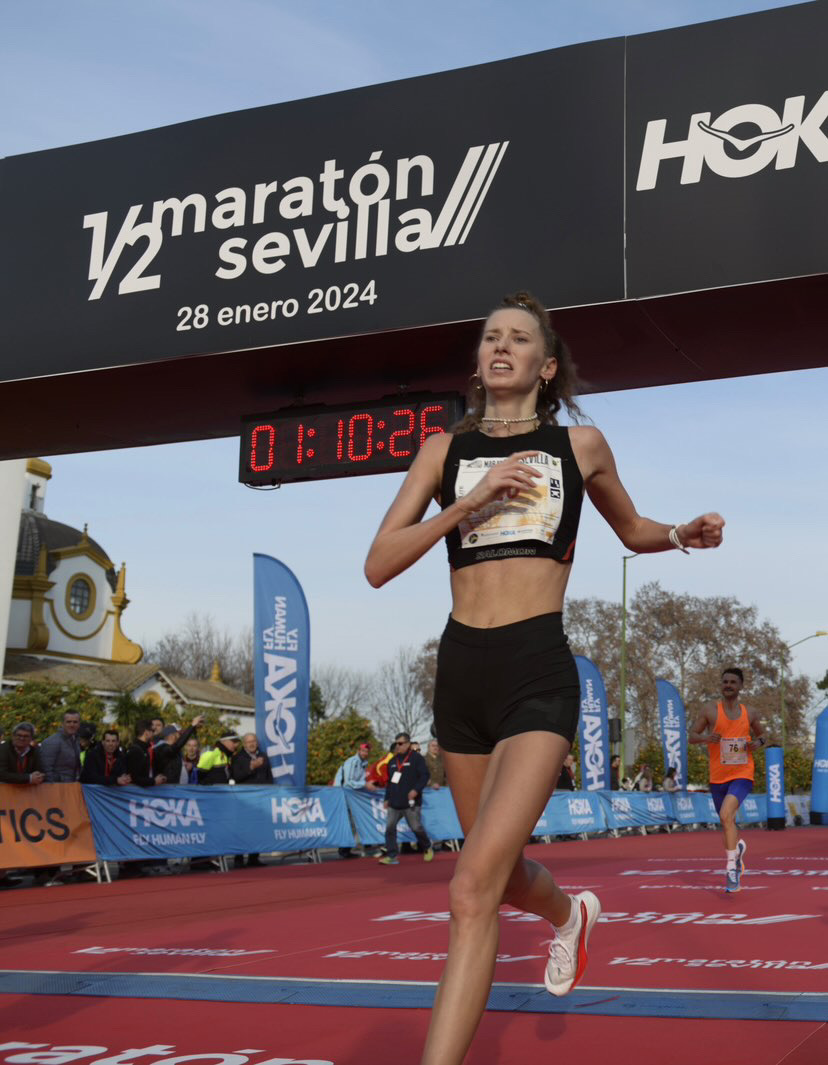 Esther Pfeiffer mit der Norm für Rom: Beim Halbmarathon im spanischen Sevilla überquerte sie nach 70:24 Minuten strahlend die Ziellinie – gemeinsam mit ihrem Ehemann Hendrik Pfeiffer, der sie als Pacemaker begleitete. Die 26-Jährige wurde Fünfte und war mehr als zwei Minuten schneller als im vergangenen Jahr in Berlin. Das Erfüllen der EM-Norm war denkbar knapp: Um sechs Sekunden unterbot die Athletin aus Niedersachsen die Qualifikationszeit für die Meisterschaft, die am zweiten Juli-Wochenende stattfindet.