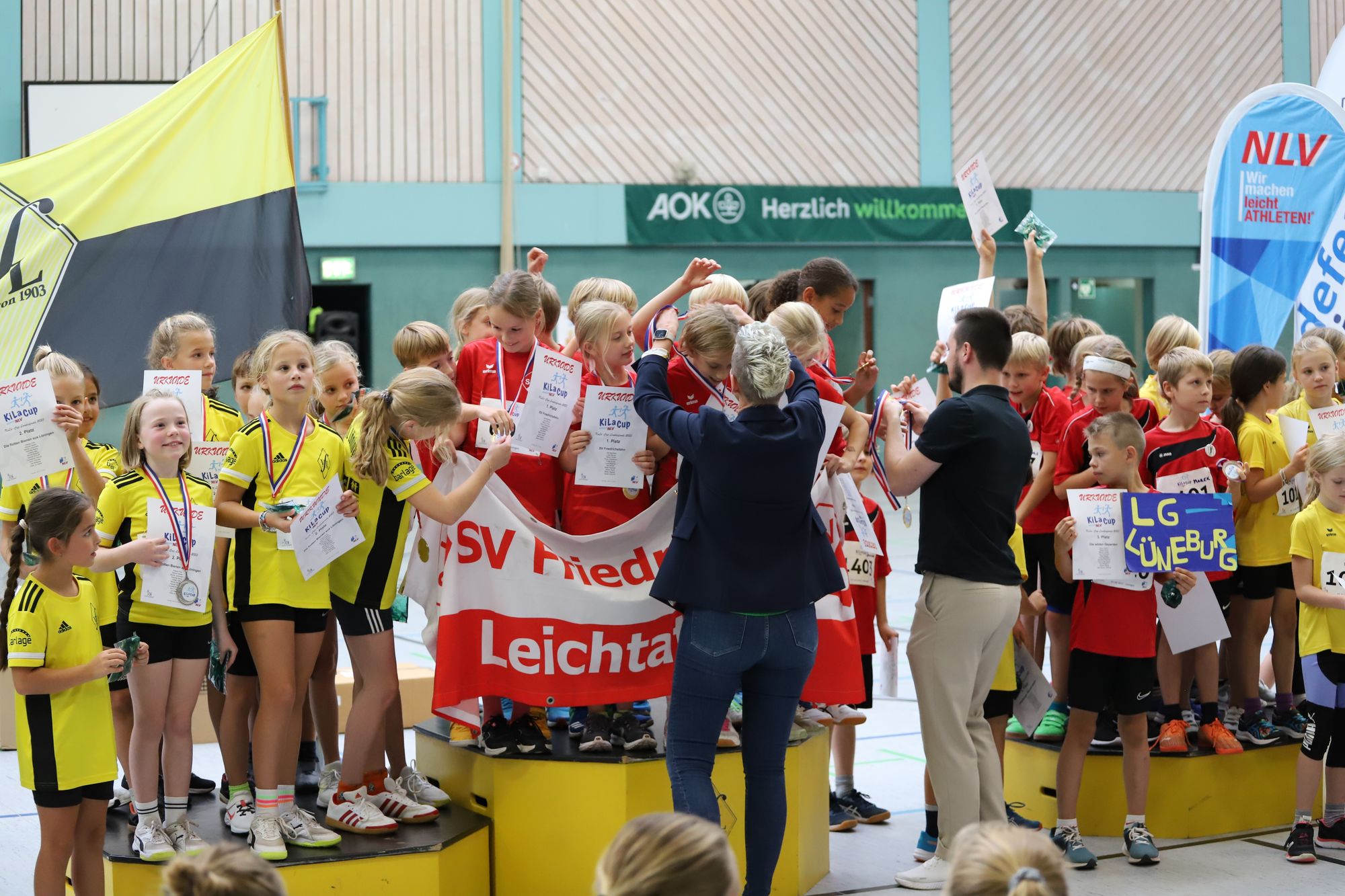 Die Siegerehrung wurde von der örtlichen Bundestagsabgeordneten Silvia Breher (CDU) und Jan Gutzeit, NLV-Vizepräsident Jugend, durchgeführt. Als Erinnerung an diesen Tag erhielt jedes Kind eine Urkunde und Give-Aways von der AOK Niedersachsen, dem Gesundheitspartner des NLV. Die TOP 3 Teams durften sich zusätzlich über Sportgeräte freuen.