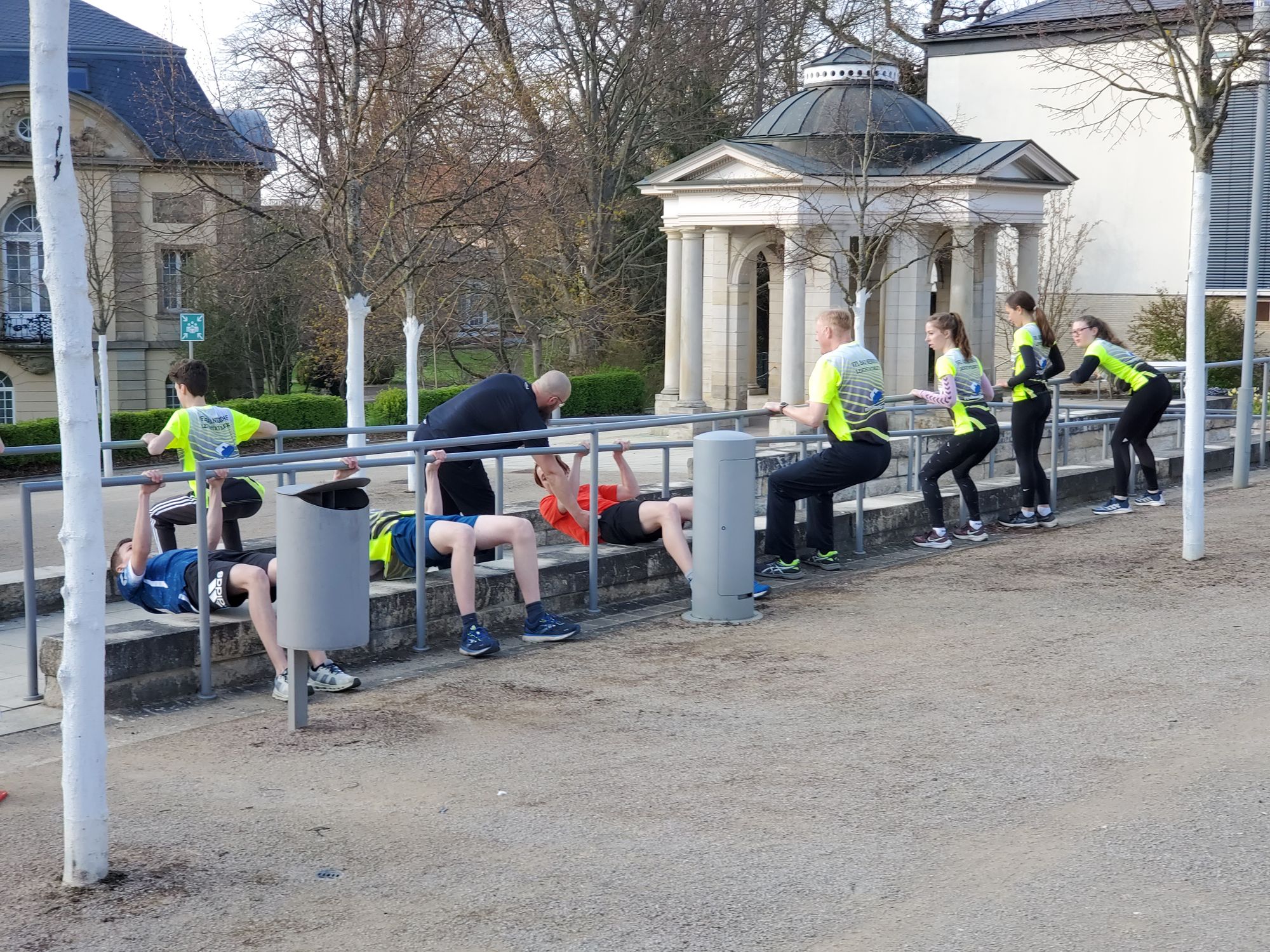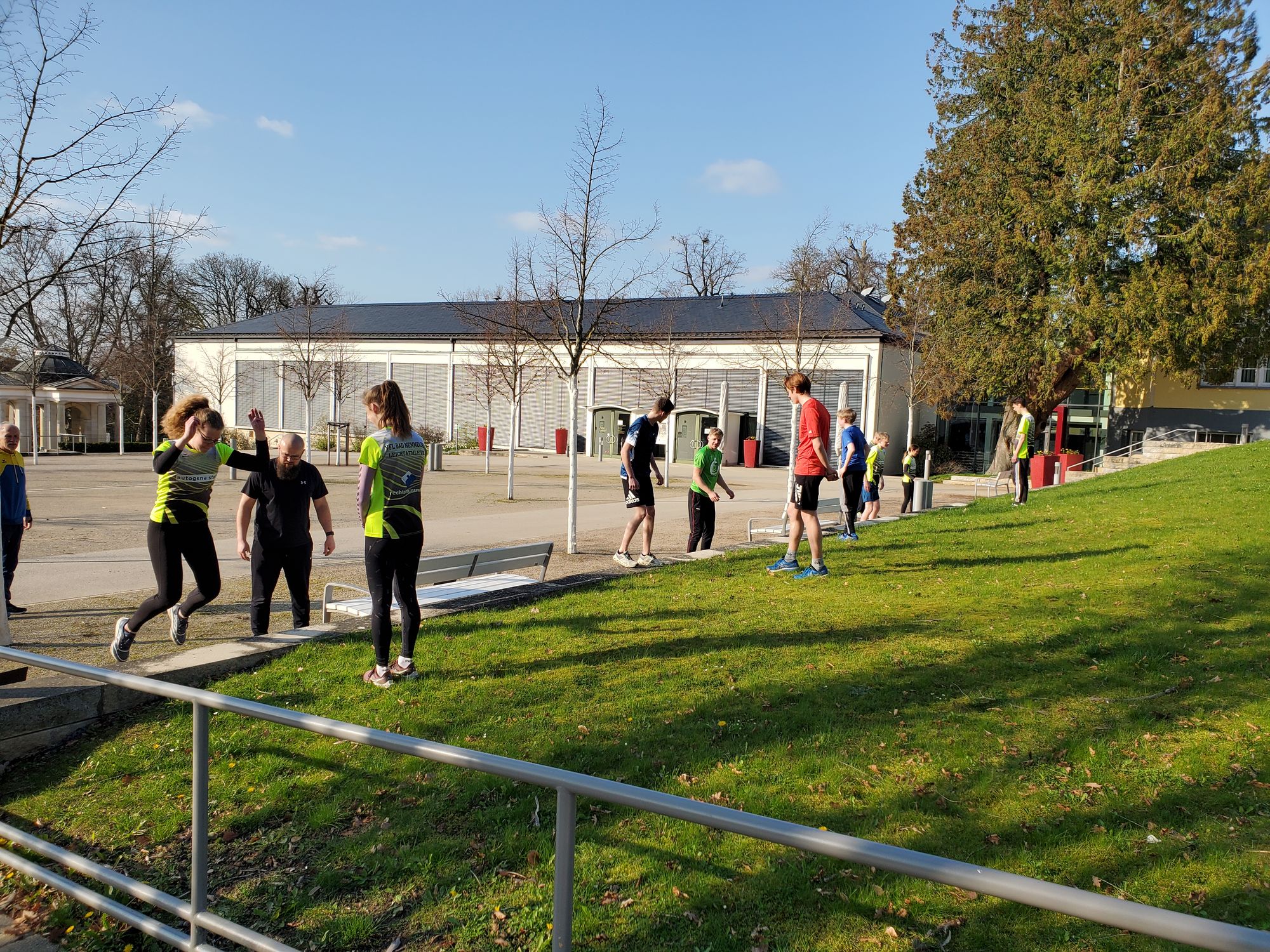 Auch der gut zehnköpfigen Läufergruppe im Altersbereich U16 bis U20, die von Günter Bade trainiert werden, wurde ein besonderes Programm geboten. Nach kurzem Warm-Up machte NLV-Referent Christoph Weber den Kurpark zum Fitnesszentrum. Nach spielerischer Erwärmung, Mobilisierung und Elementen eines Athletiktrainings durchliefen die jungen Athleten ein Ganzkörper-Zirkeltraining, das es in sich hatte. Die VfLer wurden ihrem Vereinsnamen – Verein für Leibesübungen – insbesondere im Kurpark allemal gerecht und bewiesen Ausdauer und Durchhaltevermögen. „Es hat allen Spaß gemacht. Sie haben einige neue Impulse für das weitere Training erhalten“ fasste Günter Bade das Training im Kurpark zusammen. Zum Abschluss teilte NLV-Vizepräsident Andreas Ull noch ein paar warme Worte mit den Teilnehmenden.