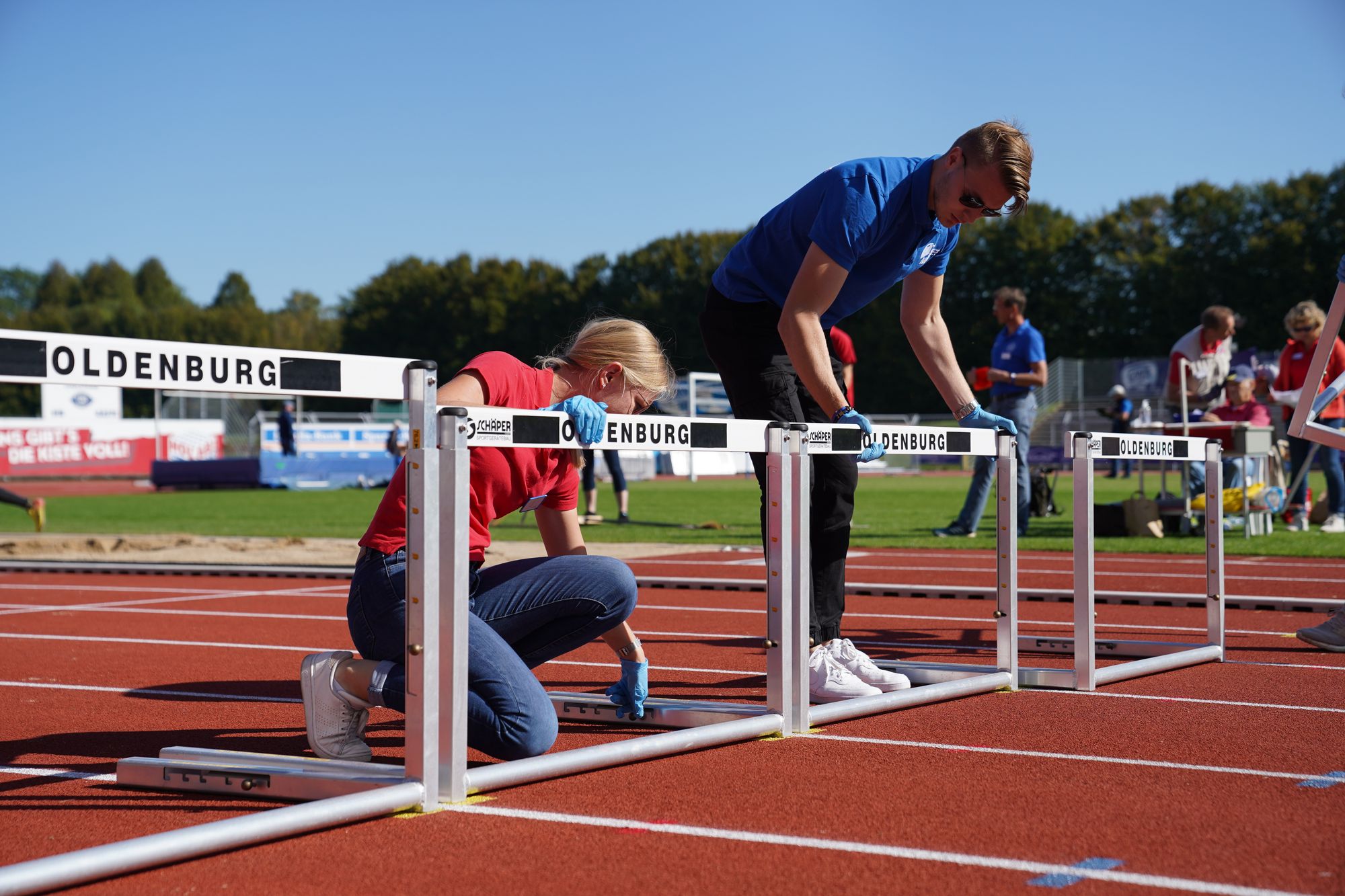 Die Weit- und Dreisprungwettbewerbe werden in Oldenburg wieder direkt vor der Haupttribüne stattfinden, wie der NLV-Vizepräsident Jugend Jan Gutzeit zuletzt mit Freude bekannt gab. Dafür wurde die sonst nur mit Kunstrasen überdeckte Sprunggrube im Vorfeld exklusiv für die Veranstaltung mit Sand befüllt. „Die Weitsprungwettbewerbe gehören zu den beliebtesten Disziplinen in der Leichtathletik. Nicht ohne Grund musste die Wettkampforganisation nach Meldeschluss noch einige Meldungen von der Liste streichen. Wir wollen den Teilnehmerinnen und Teilnehmern optimale Wettkampfbedingungen bieten und ein Erlebnis schaffen, weshalb wir die Anlage im direkten Spotlight bei der Hauptribüne einsatzfähig machen wollten“, meint der Vizepräsident und ergänzt: „Ich danke allen Beteiligten für die Umsetzung im besten Sinne der Athleten.