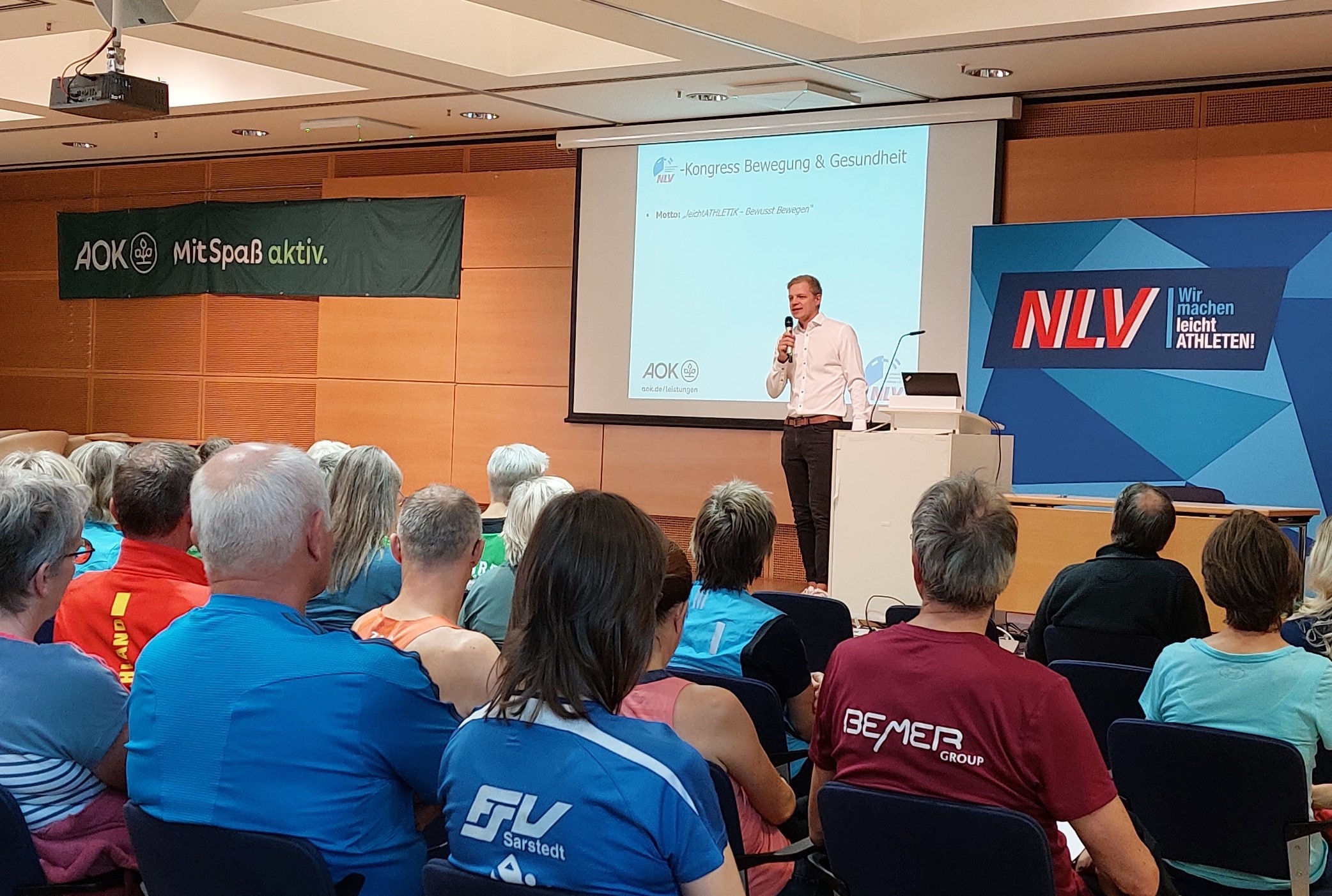 Der NLV-Kongress Bewegung und Gesundheit unterstützt von der AOK Niedersachsen – seit vielen Jahren unter dem Titel AOK-Workshop bekannt – ist die Fortbildungsplattform für den Bereich Gesundheits-, Präventions-, Breiten- und Leistungssport für Übungsleiter*innen, Trainer*innen und Interessierte aus ganz Niedersachsen. Das Workshop-Format bietet eine Vielzahl an abwechslungsreichen Themenangeboten, aus dem die Teilnehmenden jeweils vor- und nachmittags einen Kurs besuchen können.