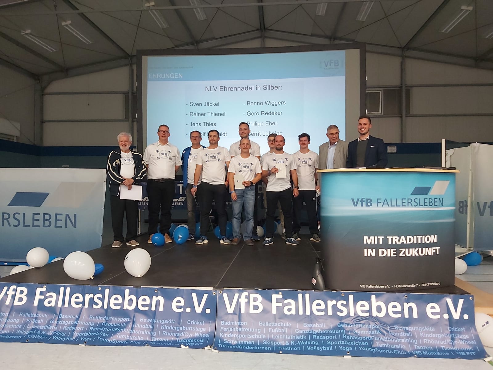 Am Abend folgte dann der offizielle Festakt in der Karl-Wilhelm-Halle. Nach der Begrüßung durch Spartenleiter Sven Jäckel und Grußworte durch Bärbel Weist (Ortsbürgermeisterin), Jan Gutzeit (Vizepräsident Jugend NLV), Thorsten Sievert (komm. Bezirksvorsitzender) und Nicolas Heidtke (Vereinsvorsitzender), dankte Sven Jäckel noch den Sponsoren: