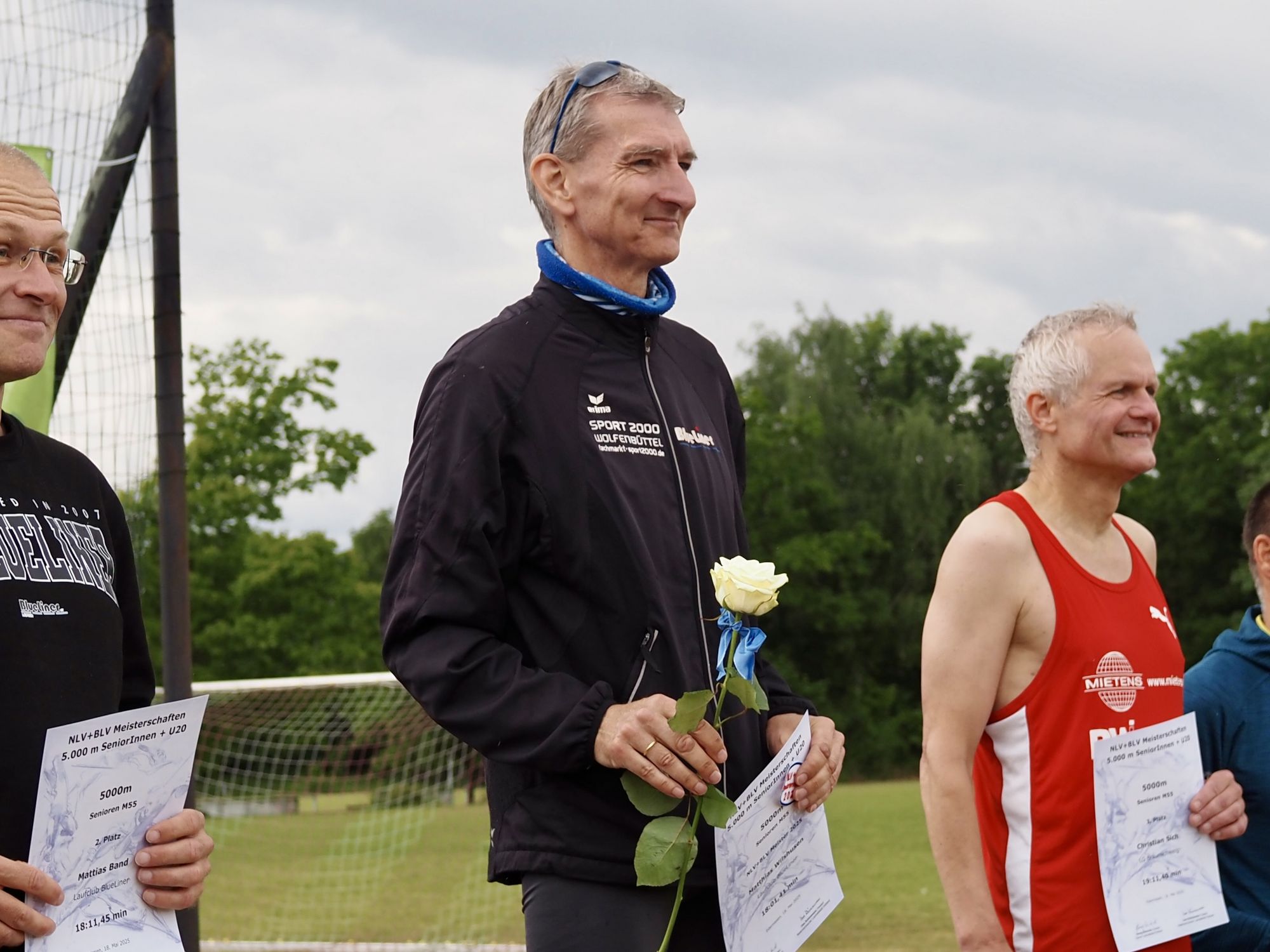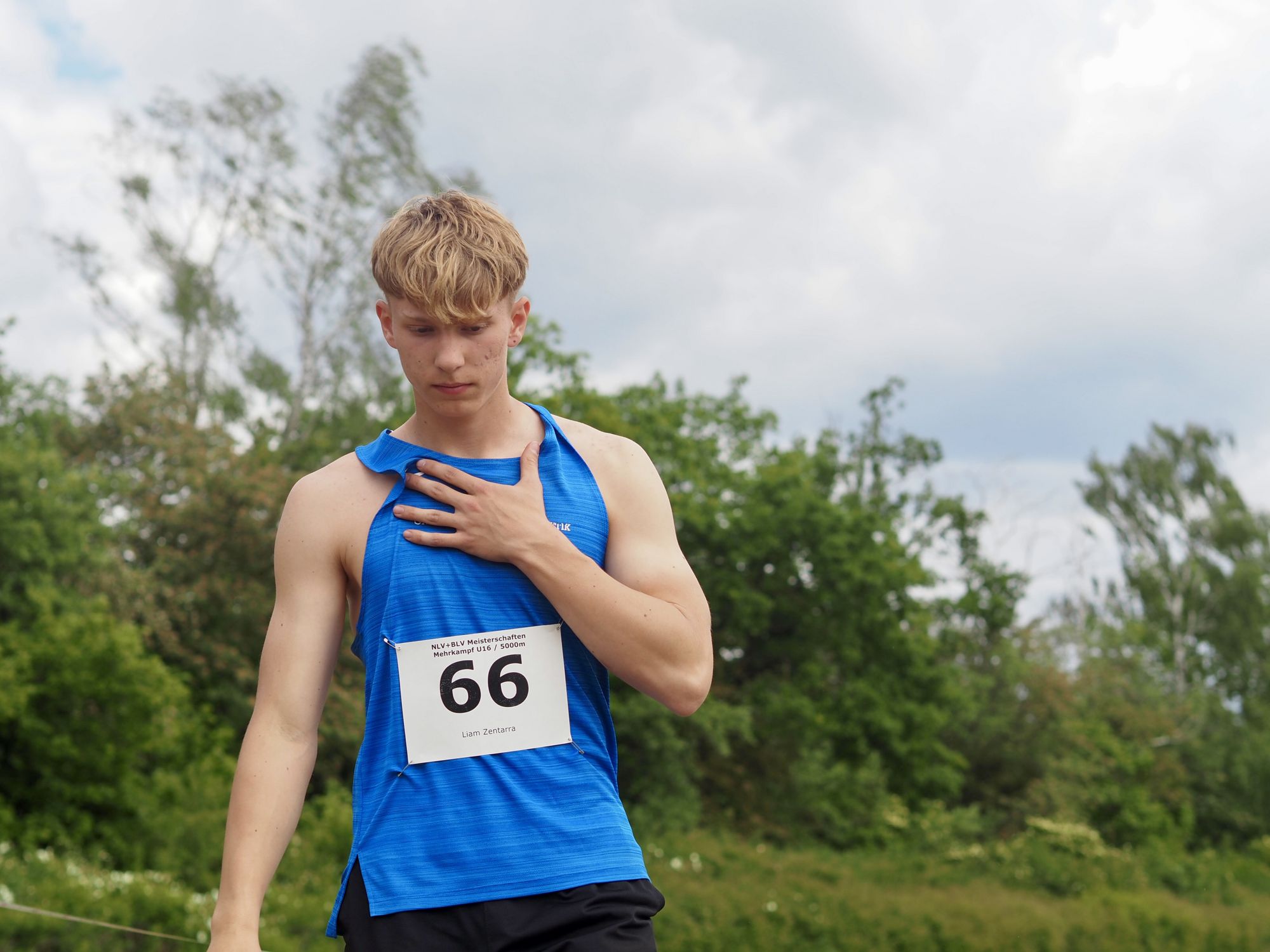 Nicht nur die Mehrkämpfer*innen füllten heute die Tartanbahn – auch einige 5000m-Läufer*innen versammelten sich an der Startlinie und kürten die neuen Landesmeister. Im Männerbereich war Rouven-Manuel Miege von der Emder Laufgemeinschaft nach 16:14,58min als schnellster Athlet im Ziel. Matthias Wilshusen vom Laufclub BlueLiner setzte sich in der M55 gegen fünf Athleten durch und wurde in 18:91,41min Landesmeister. In der M60 bestritt Helge Schweers nach einigen Jahren wieder ein 5000m-Rennen und konnte mit seinem Meistertitel und einer Zeit von 19:47,97min ein Ausrufezeichen setzen.
