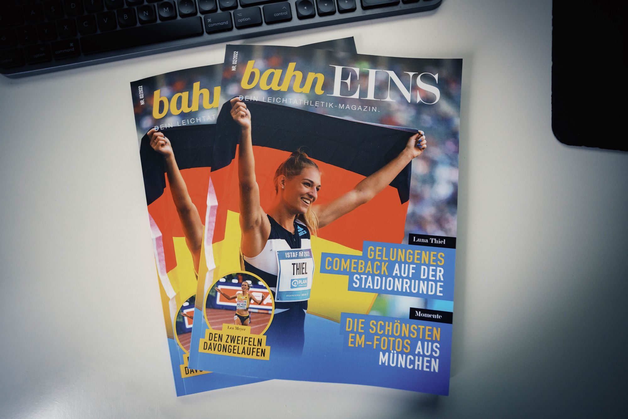 Nach der Erstausgabe Anfang August diesen Jahres ist Mitte November die zweite Magazinausgabe erschienen. Erneut hat das derzeit siebenköpfige Team eine ansprechende Auswahl an Athletenporträts und -geschichten sowie tolle Impressionen und Momente vergangener großartiger Leichtathletik-Events auf 100 Seiten zusammengestellt. Neben spannenden Porträts über 400m-Sprinterin Luna Thiel, die sich nach zwei schwierigen Jahren eindrucksvoll auf der Stadionrunde zurückgemeldet hat, Mittelstreckenläuferin Hanna Klein, die besonders vielseitig unterwegs ist, gibt es zudem ein Porträt über die Para-Sportlerin und Rennrollstuhlfahrerin Merle Menje. Besonders lesenswert ist außerdem eine ausführliche Story über Lea Meyer, die im August in München überraschende Vize-Europameisterin im 3000m-Hindernislauf wurde. Im Magazin zu finden ist auch ein großes Interview mit Speerwurf-Europameister Julian Weber. Abgerundet wird die zweite Ausgabe von bahnEINS wieder mit vielen tollen Fotos, unter anderem mit zwei Bildstrecken zu den Leichtathletik-Europameisterschaften 2022 in München sowie dem krönenden Saisonabschluss beim ISTAF 2022 im Berliner Olympiastadion. Premiere feiert im bahnEINS-Magazin indes die Kolumne „MAXimale Leidenschaft“ von und mit Mittel- und Langstreckenspezialist Maximilian Thorwirth.