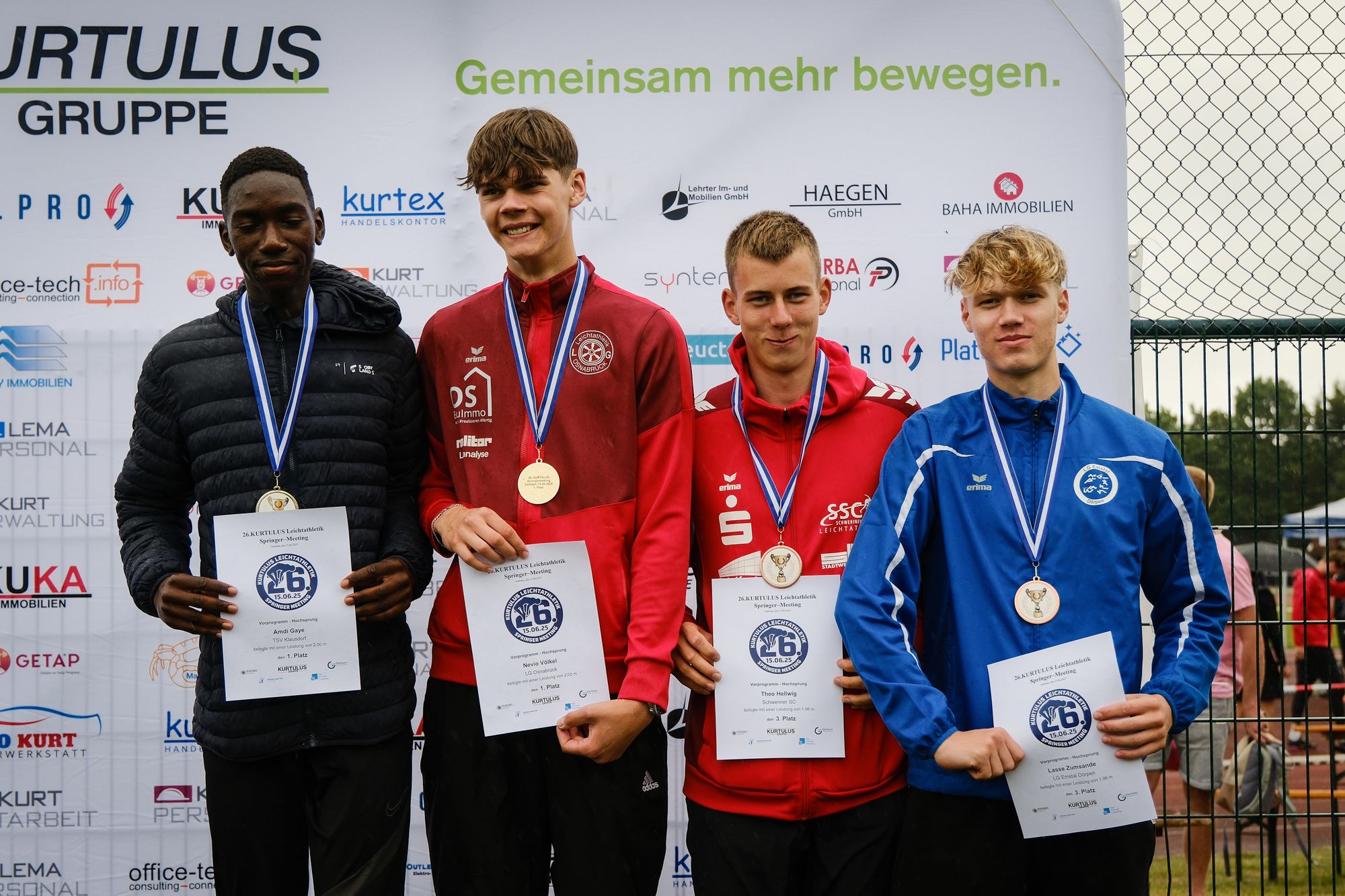 In der männlichen Jugend U18 bekam Micah Schade (LG Emstal Dörpen) den wechselnden Wind zu spüren. Im dritten Versuch 6,91 Meter bei 2,4 m/s Rückenwind, im fünften dann 2,7 m/s Gegenwind. Er siegte schließlich mit regulären 6,90 Meter. Toncho Tzolov (TSV Germania Helmstedt) war in der gleichen Alterklasse im Dreisprung mit 14,02 Meter vor Hannes Brinkmann (MTV Aurich) erfolgreich.