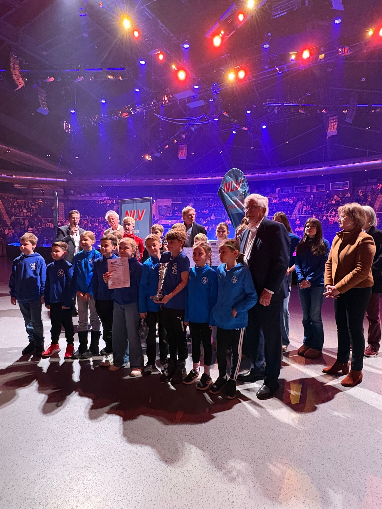 Für die Siegerteams des Vereinswettbewerbs 2025 war die Ehrung ein besonderes Highlight. Gemeinsam mit ihren Eltern und Begleiter*innen erlebten sie die feierliche Auszeichnung vor mehreren tausend Zuschauerinnen und Zuschauern in der ausverkauften Volkswagen-Halle. Die Einladung bot ihnen zugleich die Gelegenheit, die spektakuläre Show ,,VIVA Tournee - Feuerwerk der Turnkunst“, mit hochklassigen akrobatischen Einlagen, zu genießen.