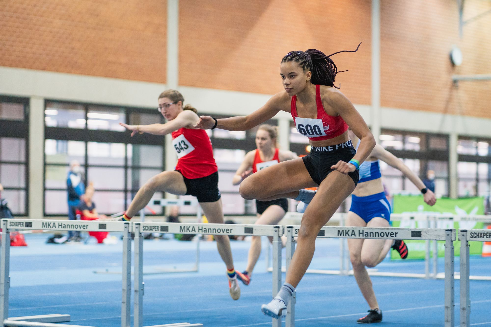 Die Sprinterinnen der 800m weibliche Jugend U18 lieferten sich ein spannendes Rennen, welches Paula Terhorst (LAV Meppen) in 2:16,11min für sich entschied. Bei den 800m der Frauen lief Carolin Hinrichs (VfL Löningen) wieder einmal in 2:09,98min zum Sieg. Mayleen Bartz (VfL Stade) sicherte sich über 60m Hürden der weiblichen Jugend U18 in 8,77 Sekunden den Sieg. Bei den Frauen konnte niemand an Naomi Krebs (Hannover 96) mit einer Zeit von 8,40 Sekunden über 60m Hürden vorbei. Luna Thiel (VfL Eintracht Hannover) glänzte auch am Sonntag wieder mit einer Zeit von 24,07 Sekunden über die 200m. Bei der weiblichen Jugend U18 bewies Emmy Lisanne Steinbrecher (Rukeli Trollmann e. V.) in 25,63 Sekunden über 200m das Potenzial zum Sieg. Weiter ging es mit den 3000m der Frauen und der weiblichen Jugend U18 mit den Siegerinnen Svenja Pingpank (Hannover Athletics) in 9:28,65min und Annika Klezath (OTB Osnabrück) in 11:00,26min. Ein abschließend spannendes Finale ergab sich bei der 4x200m Staffel der Frauen. Unschlagbar war das Quartett der STG VfL Eintracht Hannover/Oldenburg/Löningen mit Jelde Jakob, Jasmin Wulf, Tabea Schulz und Jana Ronshausen in einer Zeit von 1:42,83min.