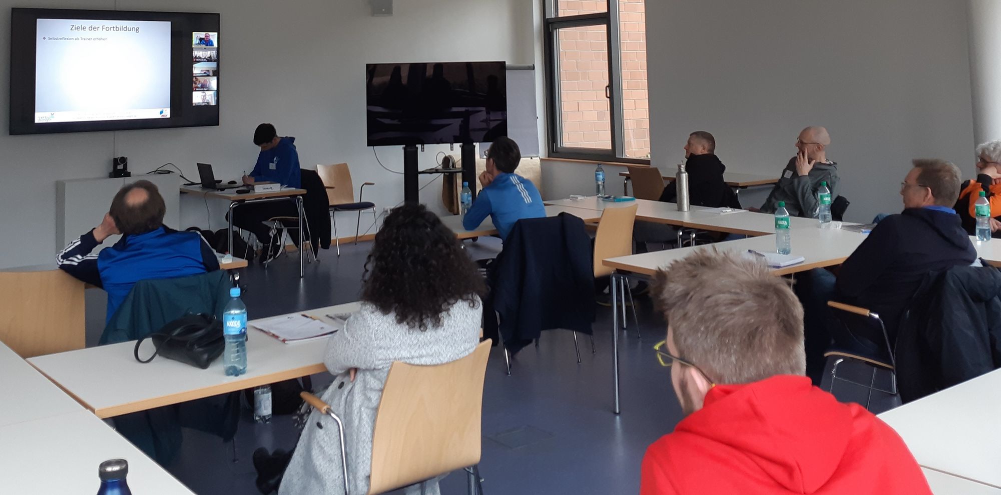 55 Trainerinnen und Trainer haben den Weg in die Akademie des Sports auf sich genommen und vor Ort an dem Symposium teilgenommen. Weitere 90 Teilnehmende waren online dabei und konnten den Workshops von Zuhause aus virtuell folgen. So konnte NLV-Vizepräsident Bildung Bernd Rebischke in seiner Willkommensrede Teilnehmende aus ganz Deutschland – und sogar aus Südafrika – begrüßen. Für die Online-Übertragung des Symposiums unterstützte das Team von SchulSportWelten die Veranstaltung, sodass eine reibungslose Übertragung von Bild und Ton sichergestellt werden konnte und auch die Online-Teilnehmenden den Vorträgen und praktischen Übungen gut folgen konnten.